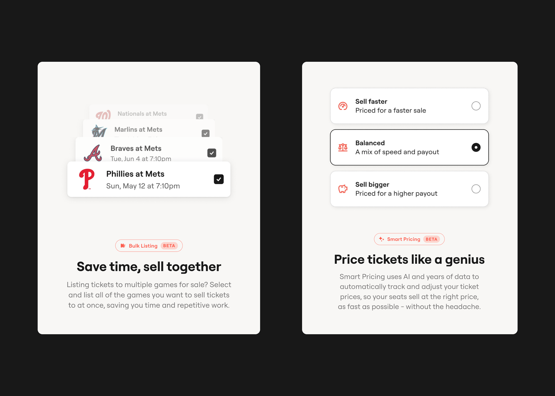 2. Smart Pricing, which helps users automatically set and adjust their ticket prices using SeatGeek's proprietary AI-assisted pricing tool.